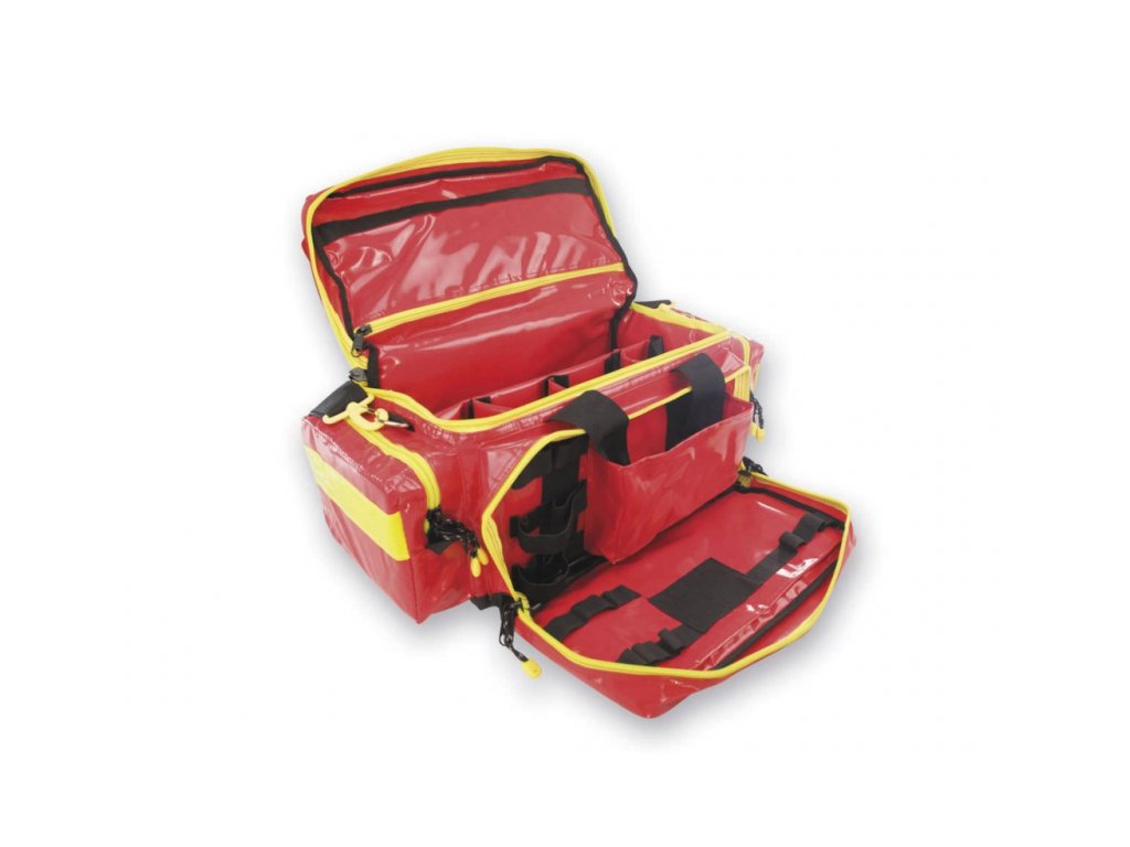Veľká vodeodolná záchranárska taška, ktorá je prispôsobená na použitie v zlých poveternostných podmienkach. Vonkajší materiál AEROTEX® - PLANE vyniká svojou odolnosťou proti mechanickému poškodeniu a vode. V hlavnom úložnom priestore tašky sú pre lepšiu organizáciu a uloženie materiálu nastaviteľné textilné prepážky. Taška má v hornej časti veľké vrecko uzatvárateľné na zips. Predné a dve bočné vrecká umožňujú uloženie veľkého množstva materiálu. Pre pohodlné nosenie je taška vybavená dvoma spojenou rukoväťou a pohodlným ramenným popruhom.