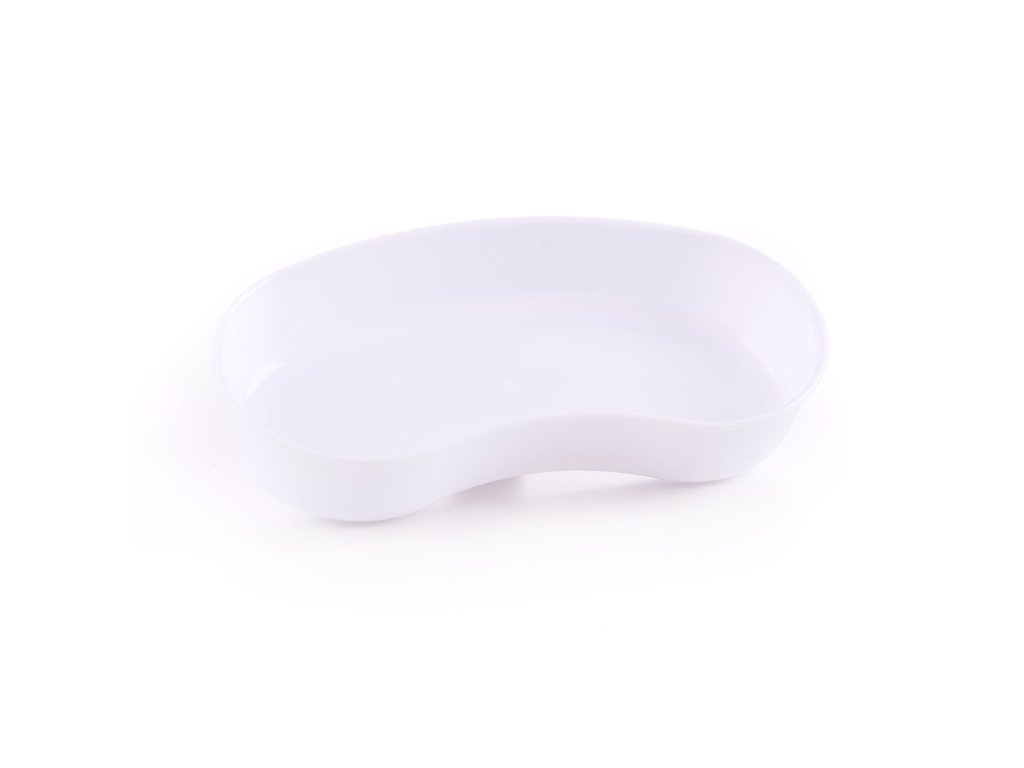 Plastová emitná miska na odkladanie lekárskych nástrojov alebo na zber telesných tekutín.