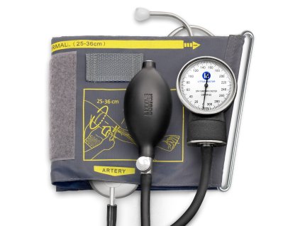 Klasický aneroidný tlakomer s integrovanou hlavicou fonendoskopu v manžete tlakomeru. • Kovový aneroidný tlakomer.• Stetoskop zabudovaný do manžety.• Nylonová manžeta pre pažu 25 -36 cm.• Sieťový filter prívodu vzduchu, aby sa zabránilo znečisteniu prístroja prachom.• Kovový vzduchový ihlový...