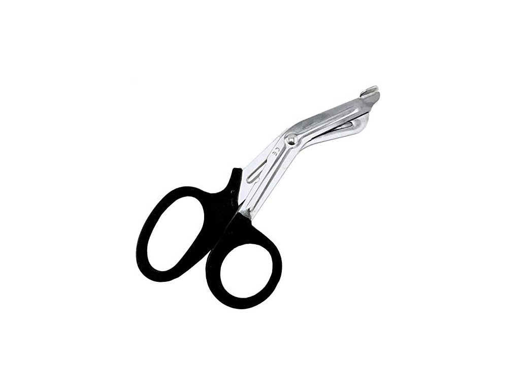 Štandardné záchranárske nožnice s termoplastickou rukoväťou a oceľovou čepeľou na strihanie odevov. Dĺžka 19 cm